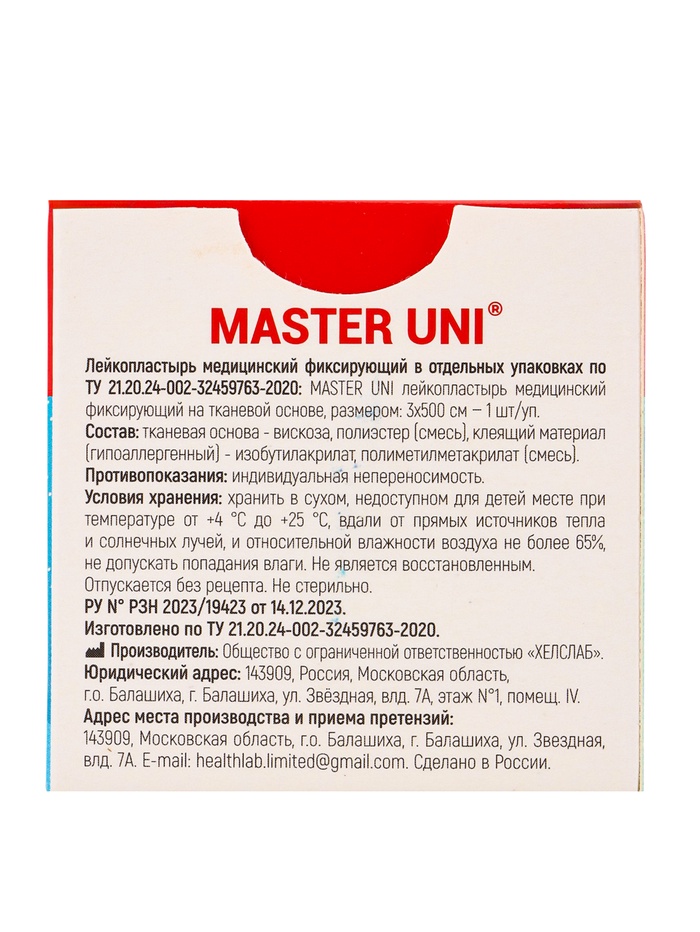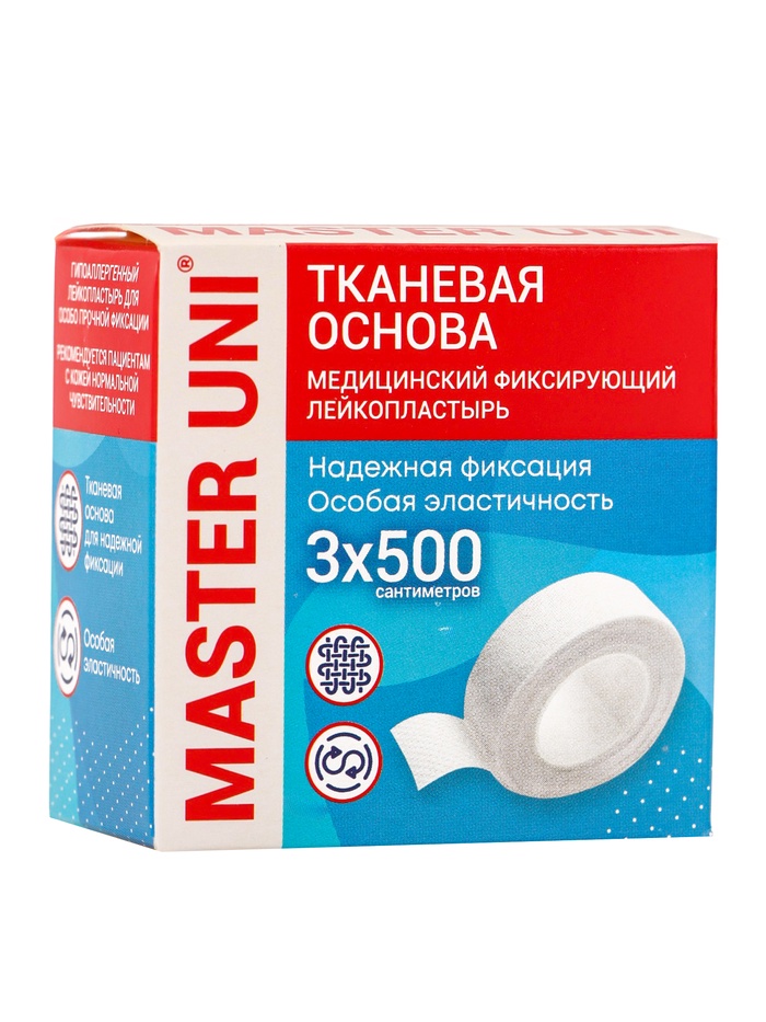 Лейкопластырь MASTER UNI на тканевой основе, 3 х 500 см
