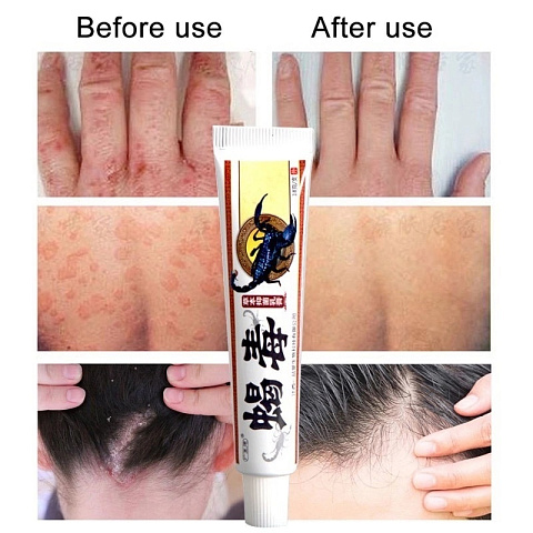 Противогрибковая мазь создана на основе яда скорпиона, используется при различных видах дерматитов, псориазе, экземе, лишаях. Эффективна при кожных заболеваниях, вызванных действием дрожжеподобных грибков, при опрелостях и укусах насекомых. Благодаря сильному ингибирующему действию быстро снимает воспаление, при использовании создает мгновенный бактериостатический эффект, устраняет зуд и раздражение на коже.