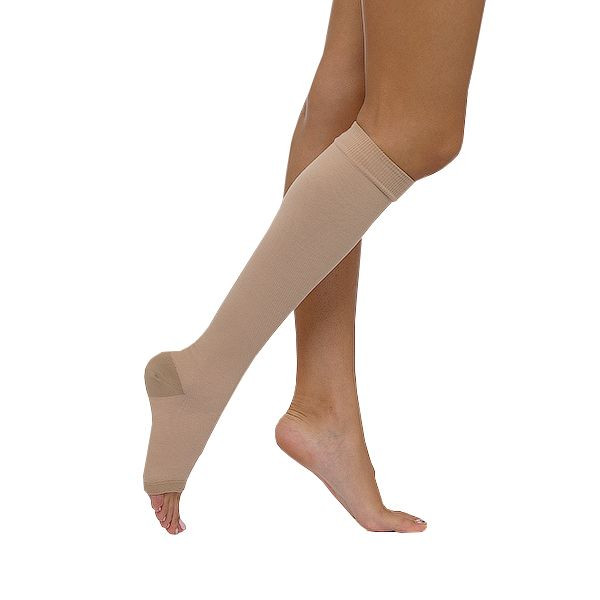 Одной из востребованных позиций является чулок компрессионный кругловязаный до колена с открытым мыском для ношения при заболеваниях вен, проблемах с опорно-двигательным аппаратом, после травм ног и т. д.