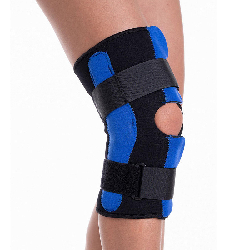 Ортез разъемный, что позволяет применять его при наличии отеков в области коленного сустава.