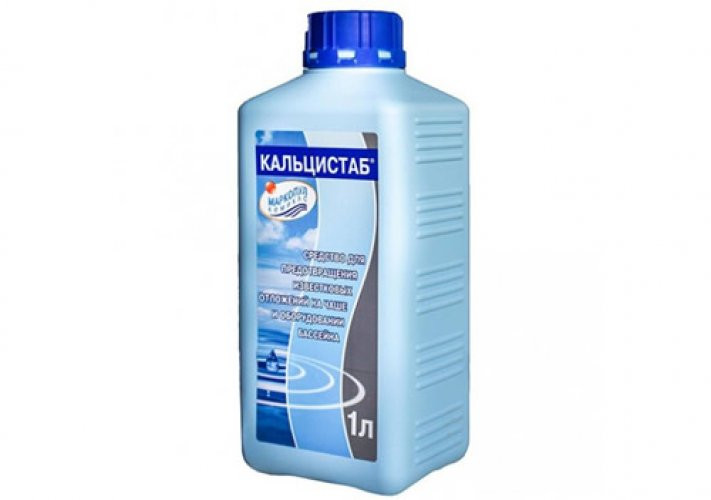 Кальцистаб - это химия для бассейна для стабилизации жесткости воды, предотвращает известковые отложения на плитке бассейна и фильтрующем оборудовании, связывая ионы металлов в воде в хелатные комплексы, благодаря чему не происходит помутнение воды и окрашивание воды ионами металлов._x000D__x000D_Применение: Средство добавляется непосредственно в воду (около триски) при работающем насосе (200-300мл средства на 10м3воды) и затем каждый раз при добавлении в бассейн свежей воды (20-30мл на 1 м3добавляемой воды)._x000D__x000D_Дозировка: Дозировка зависит от жесткости воды бассейна:_x000D__x000D_ _x000D__x000D_ _x000D__x000D_ _x000D__x000D_ Жесткость воды _x000D__x000D_Дозировка средства, мл/м3 _x000D__x000D_Дозировка средства, мл/м3 _x000D__x000D_Дозировка средства, мл/м3 _x000D__x000D_ _x000D__x000D_ _x000D__x000D_мг-экв/л _x000D__x000D_dН° _x000D__x000D_t воды<28°C _x000D__x000D_t воды=28-32 °C _x000D__x000D_t воды >32°C _x000D__x000D_ _x000D__x000D_ _x000D__x000D_Умеренно жесткая _x000D__x000D_3-6 _x000D__x000D_8-17 _x000D__x000D_20 _x000D__x000D_26 _x000D__x000D_30 _x000D__x000D_ _x000D__x000D_ _x000D__x000D_Средне жесткая _x000D__x000D_6-9 _x000D__x000D_17-25 _x000D__x000D_25 _x000D__x000D_33 _x000D__x000D_38 _x000D__x000D_ _x000D__x000D_ _x000D__x000D_Очень жесткая _x000D__x000D_свыше 9 _x000D__x000D_свыше 25 _x000D__x000D_30 _x000D__x000D_39 _x000D__x000D_45