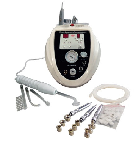 Алмазная микродермабразия. В комплекте сменные головки для процедур микродермабразии с различной зернистостью шлифующей поверхности - от 80 до 260 мкм- 9 насадок, 3 ручки и сменные фильтры. Максимально создаваемое разрежение (вакуум) - до 76 см ртутного столба
