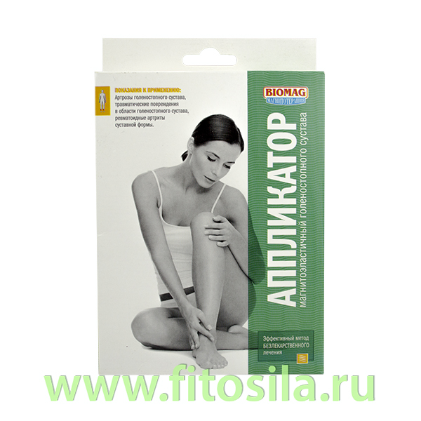 Аппликатор предназначен для лечения постоянным магнитным полем голеностопного сустава, снятия болевого синдрома и воспалительных процессов в области сустава. Применяется в виде самостоятельного безлекарственного метода терапии в амбулаторных или домашних условиях, а так же в сочетании с другими физическими или медикаментозными средствами.