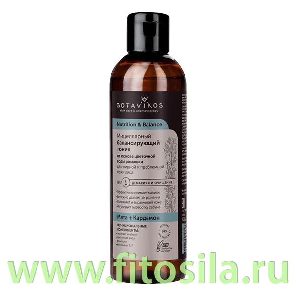Мицеллярная вода для жирной и проблемной кожи лица, Питание и баланс, мята кардамон, 200 мл БОТАВИКОС 2024