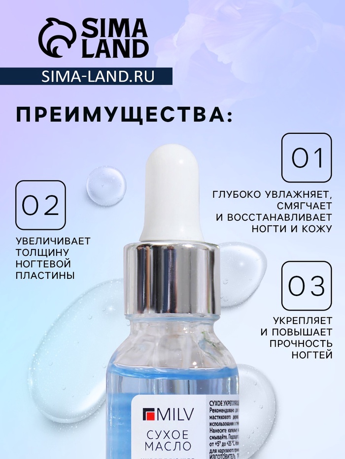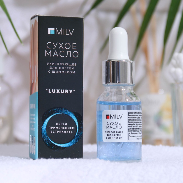 Сухое укрепляющее масло для ногтей Milv Luxury, с шиммером, 15 мл