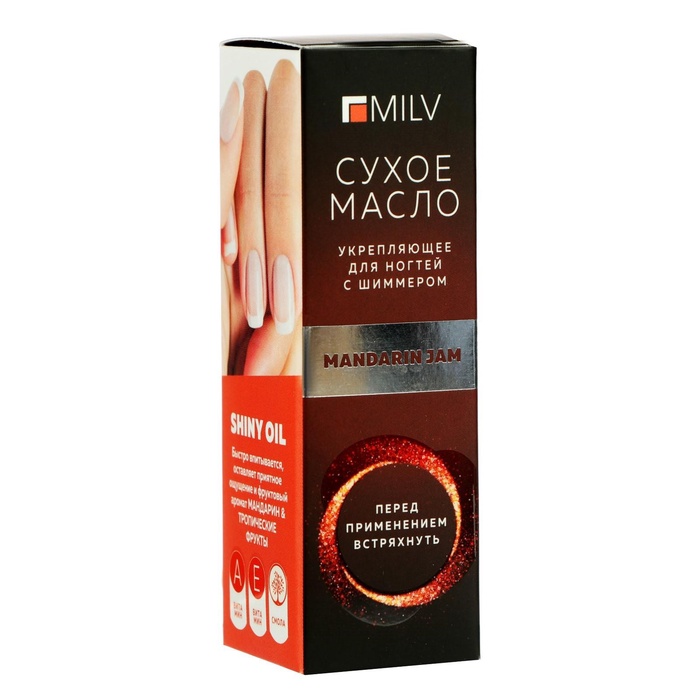 Сухое укрепляющее масло для ногтей Milv Mandarin jam с шиммером, 15 мл