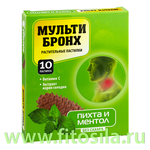 Мульти-Бронх растительные пастилки со вкусом пихта с ментолом - БАД, 10 шт. х 3250 мг (при заболевании горла) БЕЗ САХАРА