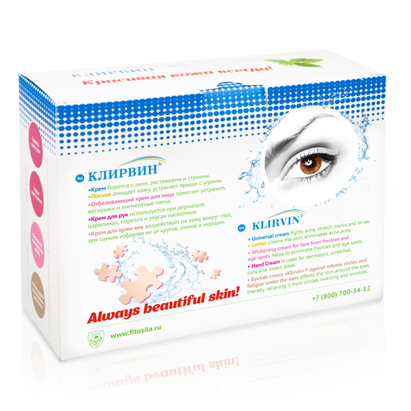 Набор КЛИРВИН в который входит: крем для тела, крем для век, крем для рук, крем отбеливающий, лосьон для кожи.