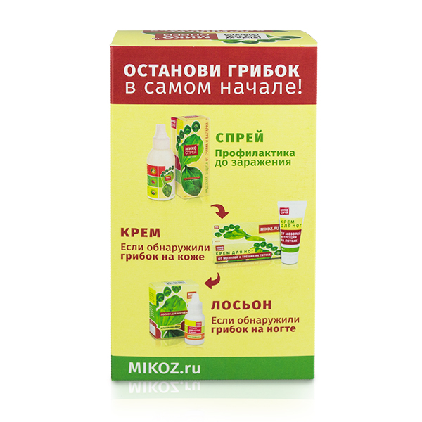 Набор МИКОСПРЕЙ ® 3 в 1 (клотримазол лосьон для ногтей и кожи 15 мл,крем для ног от мозолей и трещин на пятках 75 г, микоспрей ® спрей косметический)