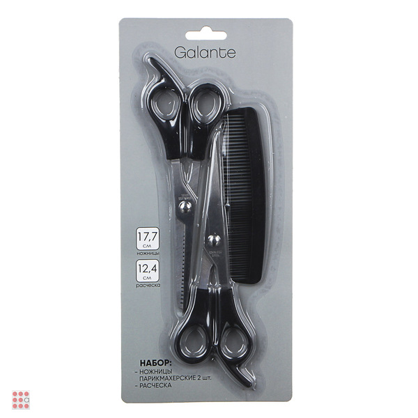 Набор парикмахерский GALANTE: ножницы 2шт 17,7см + расческа 12,4см, металл, пластик
