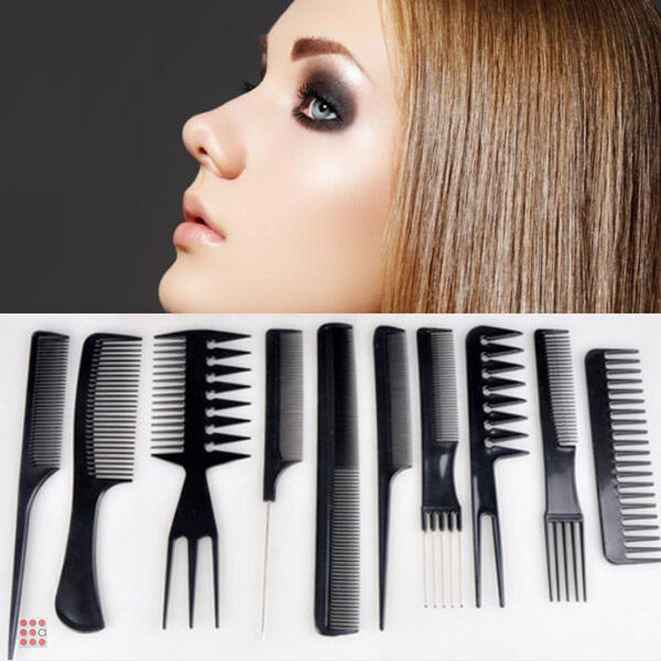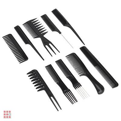 Набор профессиональных расчесок состоит из десяти расчесок, две из которых являются двусторонними, фактически получается двенадцать расчесок.