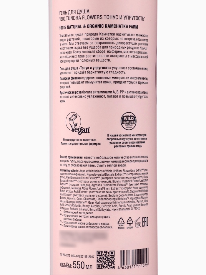 Гель для душа Natura Siberica BIO Tundra Flowers, тонус и упругость, 550 мл