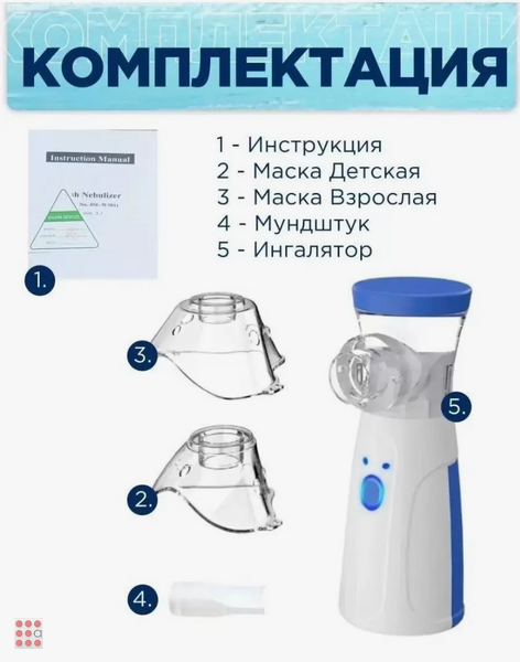 Ингалятор портативный бесшумный для детей и для взрослых. Просто прекрасная находка для путешествий с детьми.Две маски разных размеров в комплекте с ингалятором делают его подходящим как для взрослых, так и для детей. Это бюджетный и удобный вариант для срочных ингаляций, когда нет основного большого устройства. Ручной небулайзер используется для устранения кашля, насморка, очистки носа. Облегчения дыхания, лечения простуды. Бытовой, портативный небулайзер, с минимальным уровнем шума, вмещает в колбе 25 мл лекарства, которое пропускает через сетку - распылитель с мельчайшими отверстиями, так создается пар, при этом препарат не разрушается, поскольку вибрации направлены на сетку, а не на лекарство. Можно делать несколько ингаляций подряд. Компрессорный небулайзер будет идеальным выбором для домашнего использования. Ингалятор легок в использовании и удобен в хранении, так как является портативным устройством. Самый современный тип ингалятора. Маленький и автоматический игалятор с силиконовой маской и препаратом для распыления можно брать на прогулку, чтобы проводить процедуру малышам. Даже на улице: компактный нибулайзер легко вмещается в сумку или рюкзак. Маленький и удобный размер (карманный вариант). Сделан из прочного пластикового материала, а маски из гипоаллергенного силикона, так же есть насадка мундштук. Современное устройство с зарядкой от сети или батареек ( в комплекте не прилагаются)- отличное средство поддержать свое здоровье или здоровье ребенка.
