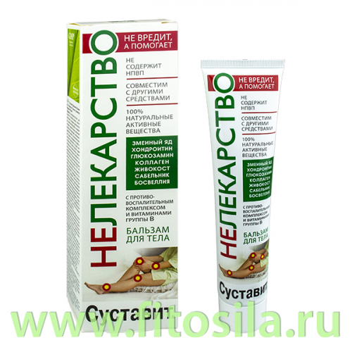 Бальзам для тела " Суставит Нелекарство пчелиный яд и хондроитин" - эффективное средство на основе природных компонентов. Способствует нормализации функционального состояния. Стимулирует естественную регенерацию тканей, препятствует развитию деструктивных процессов.
