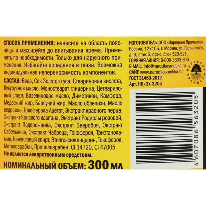 Крем-снадобье «Новые тайны золотого уса», с барсучьим жиром и перцем, 300 мл