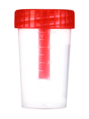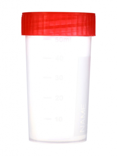 Контейнер для биоматериалов 60 мл, завинчивающаяся крышка, матовое окно, индивидуальная упаковка