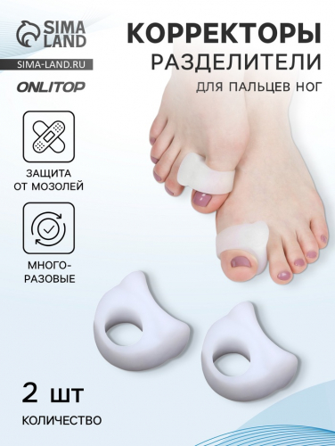 Корректоры - разделители для больших пальцев, силиконовые, 3×3.5 см, пара, белые