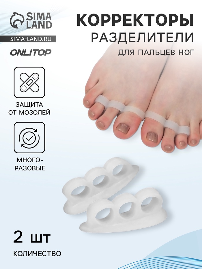 Корректоры - разделители для пальцев ног, 2 разделителя, силиконовые, 7×2 см, пара, белые