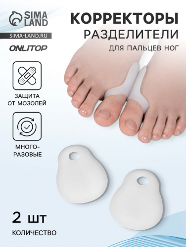 Корректоры - разделители для пальцев ног, с накладкой на косточку большого пальца, силиконовые, 7×6 см, пара, белые