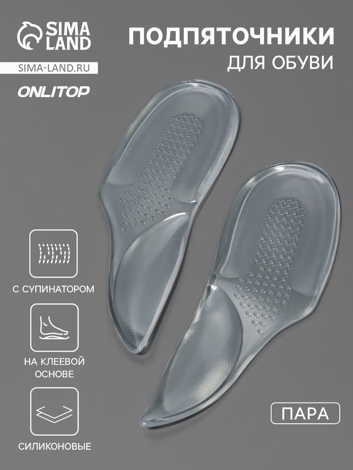 Подпяточники для обуви, с супинатором, на клеевой основе, силиконовые, 15.5×5.5 см, пара, прозрачные