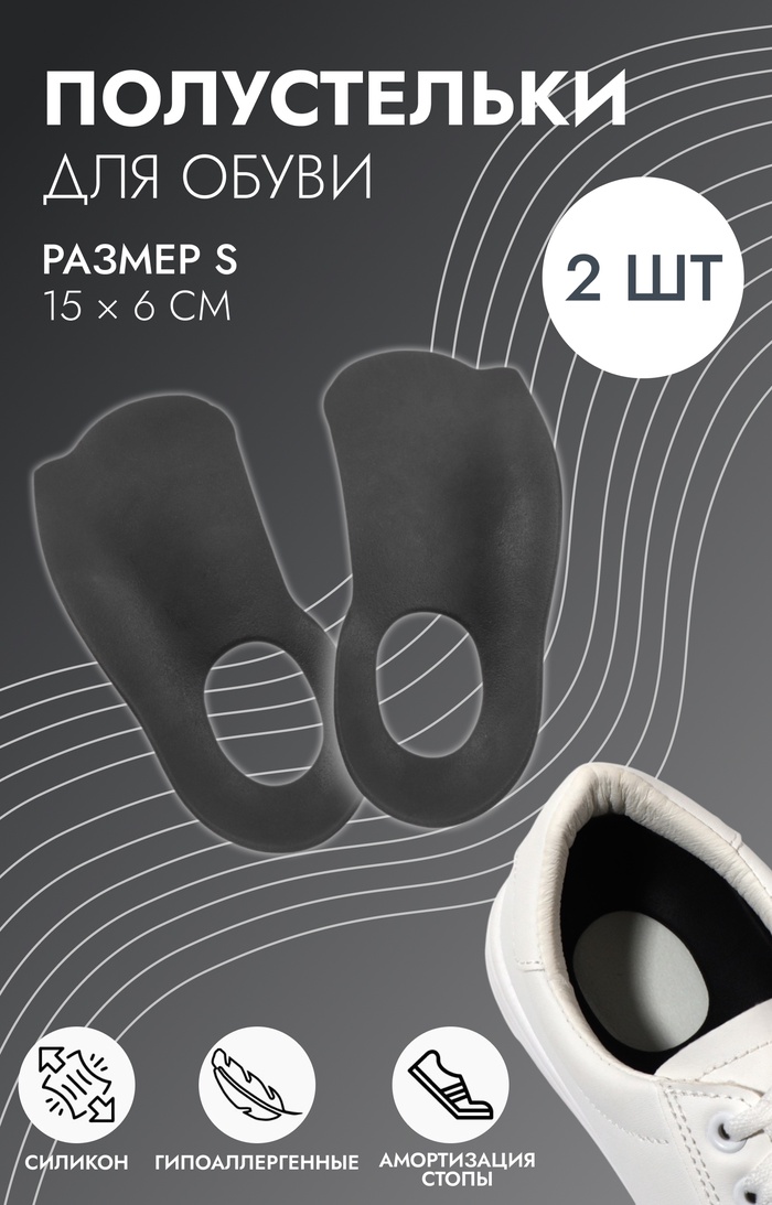 Полустельки для обуви, S р-р, 15×6 см, пара, чёрные