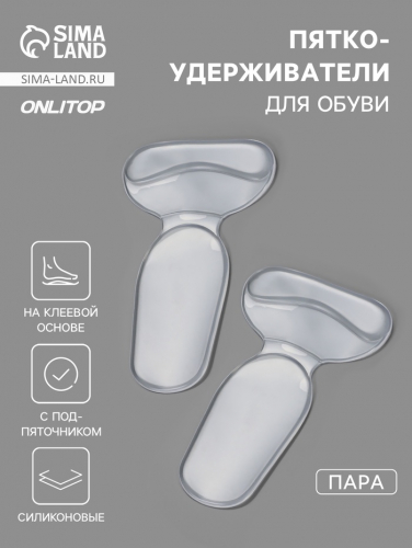 Пяткоудерживатели для обуви, с подпяточником, на клеевой основе, силиконовые, 14×8.5 см, пара, прозрачные