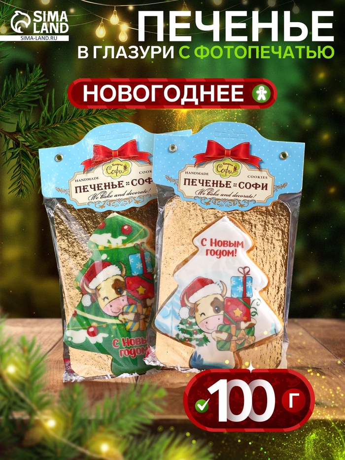 Печенье новогоднее «Елочка» в глазури с фотопечатью, 110 г