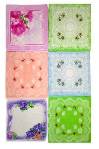 Материал ткани: ситец ГОСТ; Состав: 100% хлопок; Плотность: 90 ± 5 г/м2; Размер изделия: 26х28 ± 2 см; Производство: г. Иваново; Тип изделия: платки; Цвет: в ассортименте