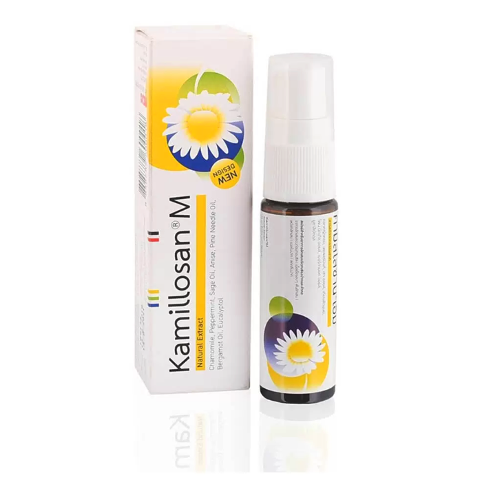 Противовоспалительный натуральный антибактериальный спрей для горла с ромашкой Kamillosan M, 15 мл. Таиланд