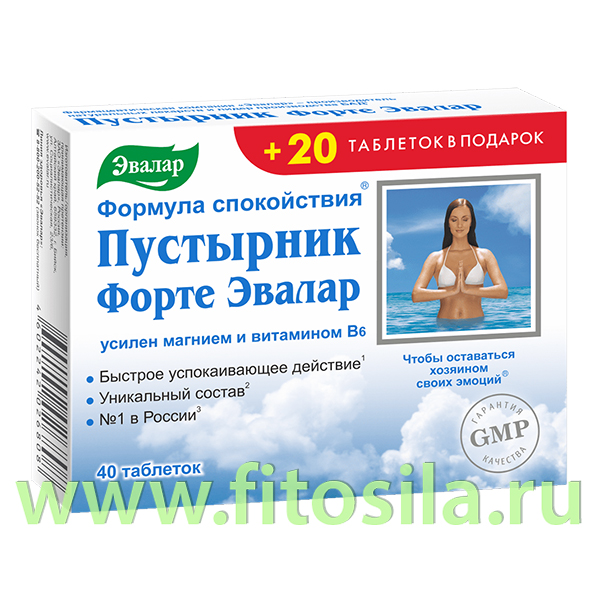 Кроме того, только в Пустырнике Форте Эвалар высокая суточная дозировка пустырника (100 мг) усилена «элементами спокойствия» магнием и витамином В6.