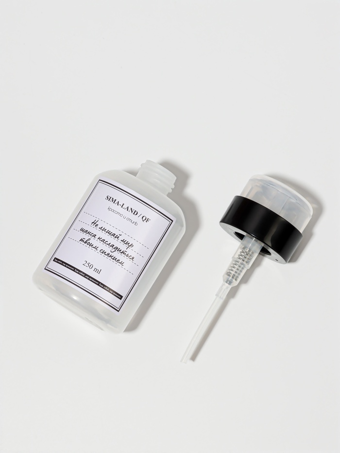 Объём флакона — 250 миллилитров. Это оптимальный размер для того, чтобы взять его с собой в дорогу или использовать дома. Помпа обеспечивает удобное дозирование и экономичный расход содержимого. Больше не нужно беспокоиться о перерасходе или недостатке средства! Стильный дизайн флакона подойдёт под любой интерьер и станет украшением вашей ванной комнаты. Он компактный и лёгкий, поэтому не займёт много места на полке или в сумке. Теперь ваши любимые косметические средства всегда будут под рукой!