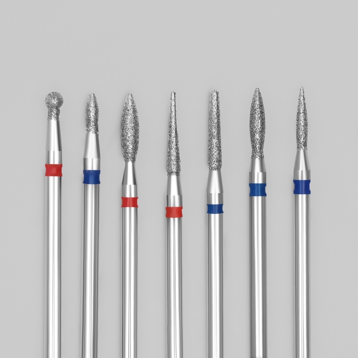 Фрезы для маникюра, алмазные, универсальные, 7 шт., разная форма и зернистость