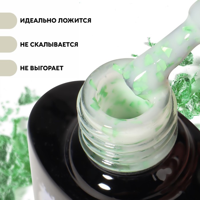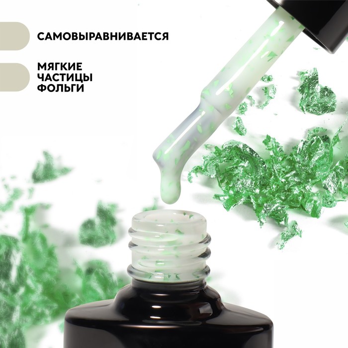 Гель лак для ногтей, молочный, с поталью, трехфазный, 8 мл, LED/UV, белый, зелёный (08)