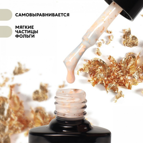 Гель лак для ногтей, молочный, с поталью, трехфазный, 8 мл, LED/UV, белый, золотистый (03)