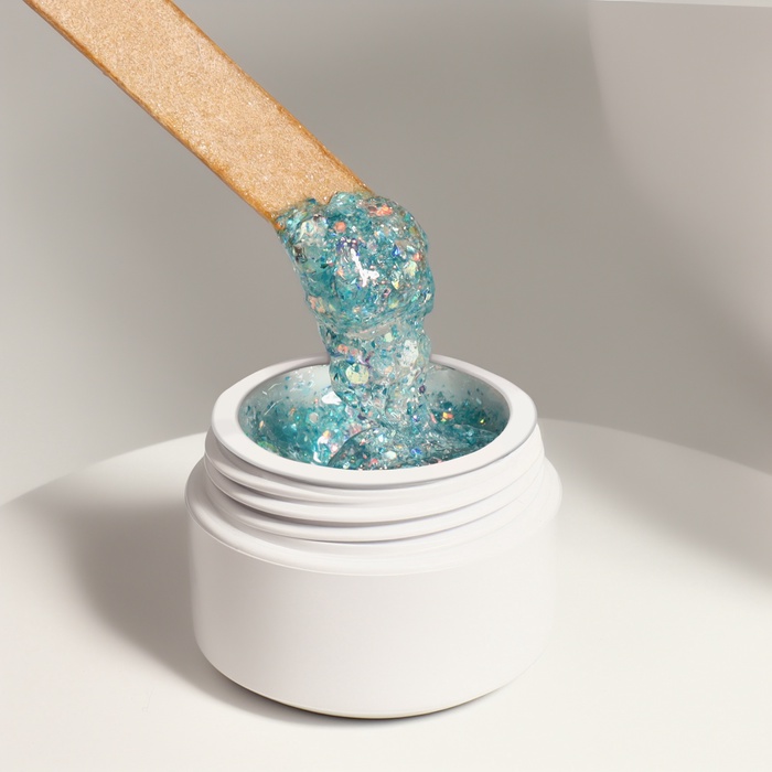 Гель лак для ногтей, с блёстками, трехфазный, 8 мл, LED/UV, голубой