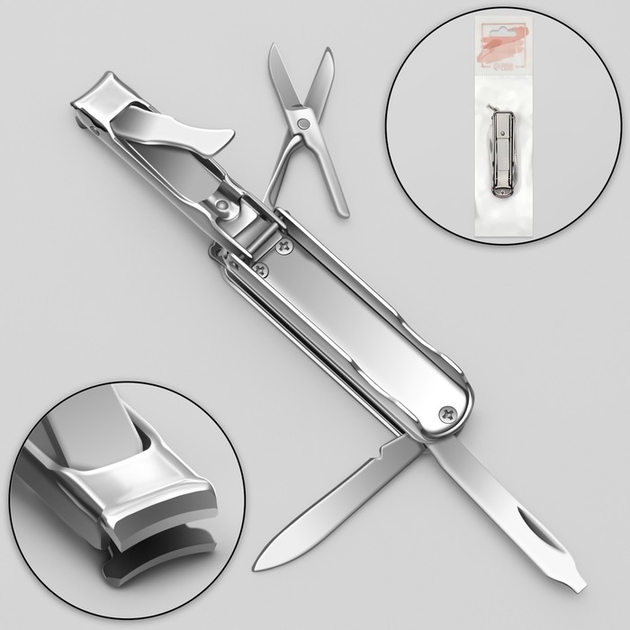 Кусачки-книпсер маникюрные, 4 в 1, многофункциональные, 6 см, цвет серебристый