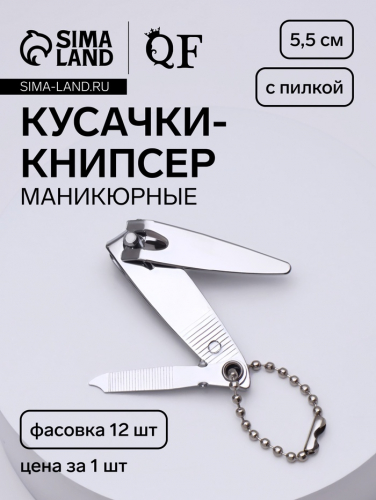 Кусачки книпсер маникюрные, с пилкой, с цепочкой, 5.5 см