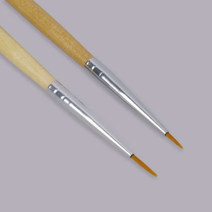 Для создания различных дизайнов используются специальные кисти для рисования на ногтях, отличающиеся формой, длиной и жесткостью ворса. Кисточка служит для выполнения мелкого рисунка. Краска набирается на кончик, и кисть идёт практически перпендикулярно поверхности.