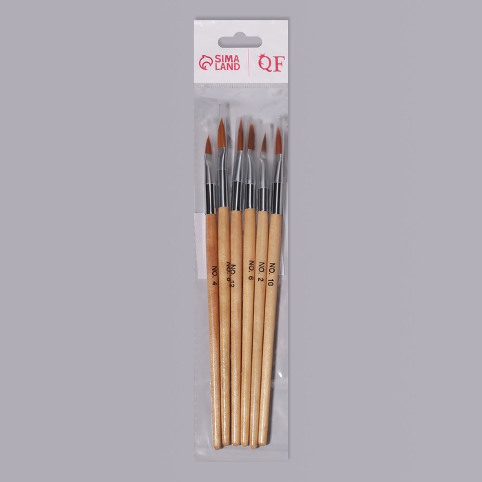 Набор кистей для наращивания и дизайна ногтей, форма лепесток, 6 шт., 19.5 см, коричневый