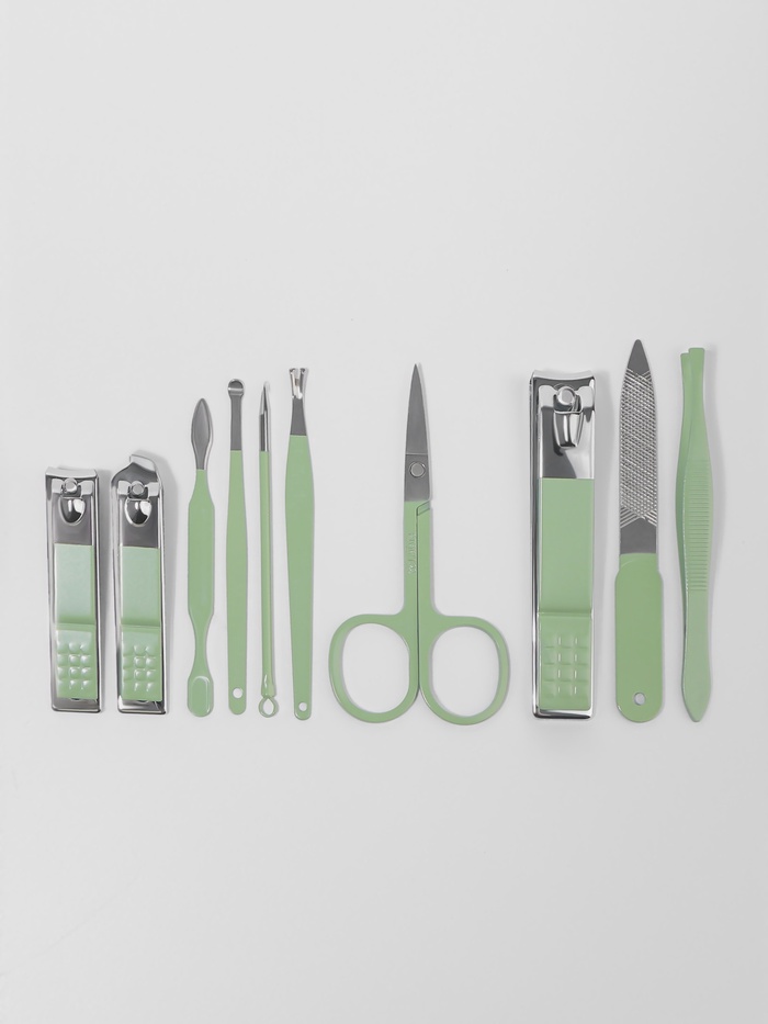 Маникюрный набор 10 в 1 в мятном футляре — это продуманный комплект для ухода за руками, ногами и ногтями. Всё необходимое собрано в одном месте: 10 качественных инструментов из металла, надёжно закреплённых в футляре из искусственной кожи с застёжкой-молнией. Удобный, прочный и стильный — подходит как для повседневного использования, так и в качестве универсального подарка.