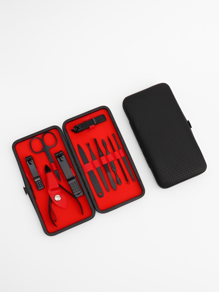 Набор маникюрный, 11 предметов, чёрный, красный
