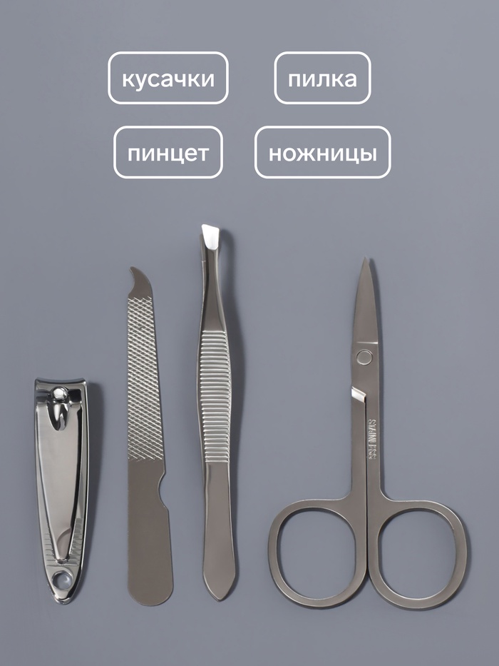 Набор маникюрный, 4 предмета, серебристый