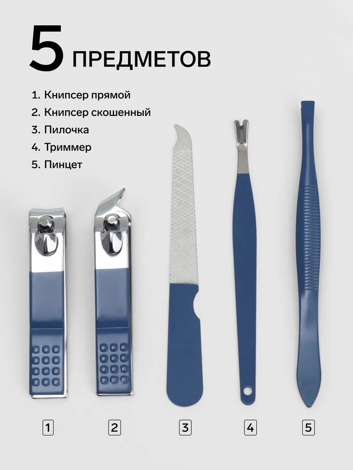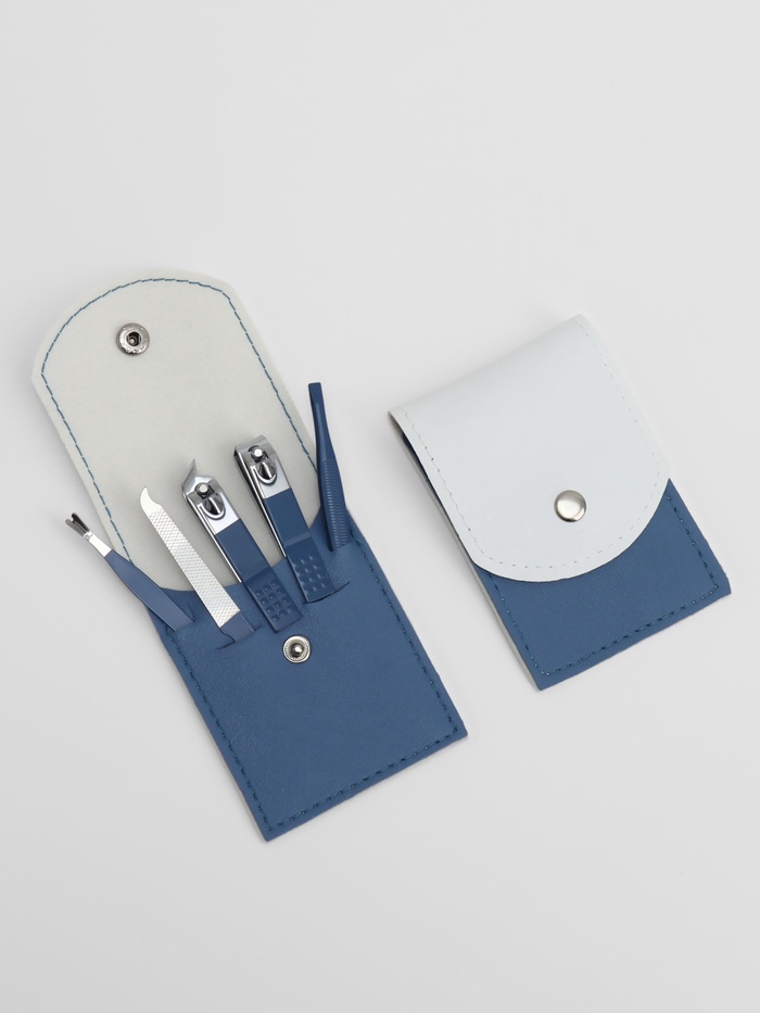 Набор маникюрный, 5 предметов, в футляре, голубой, белый