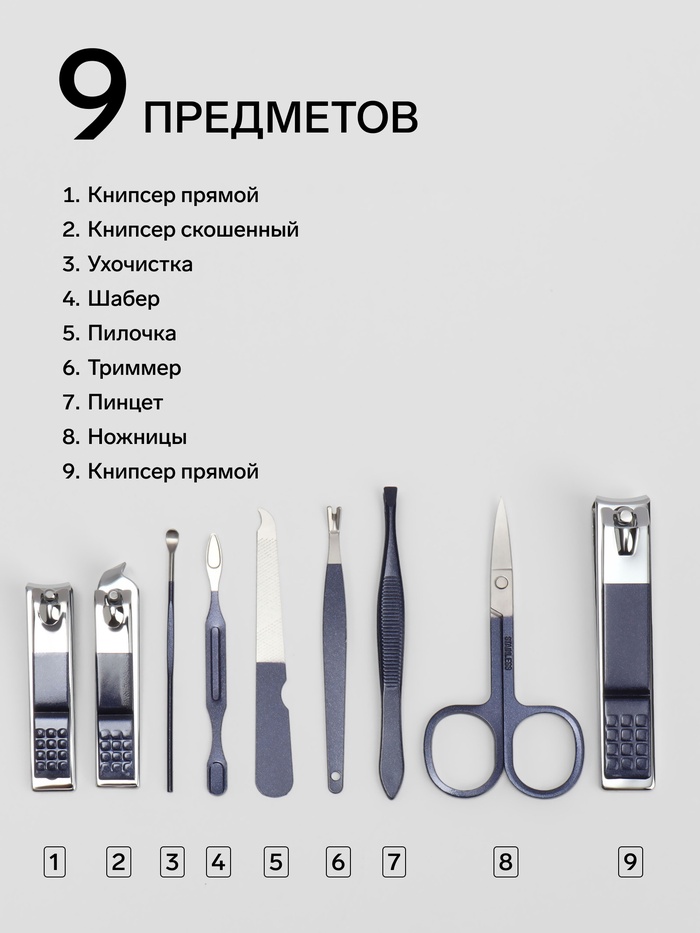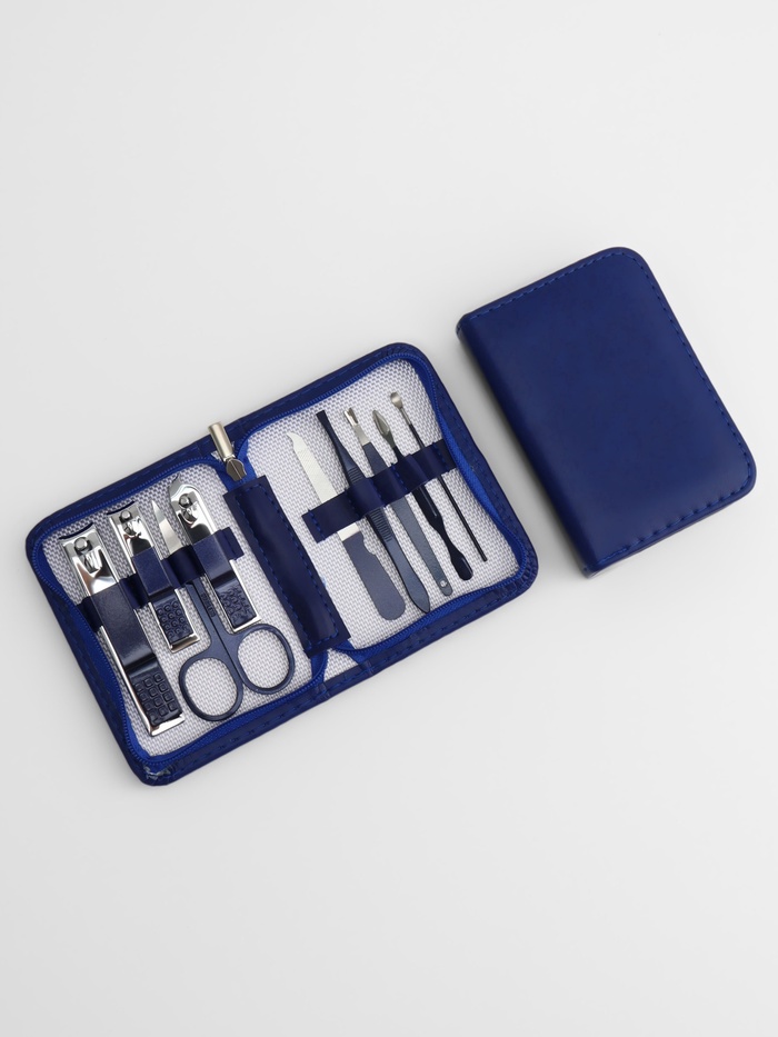 Набор маникюрный, 9 предметов, в футляре, синий