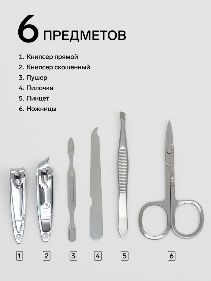 Составляющие набора: Ножницы, Пилка, Пушер, Книпсер, Пинцет_x000D_