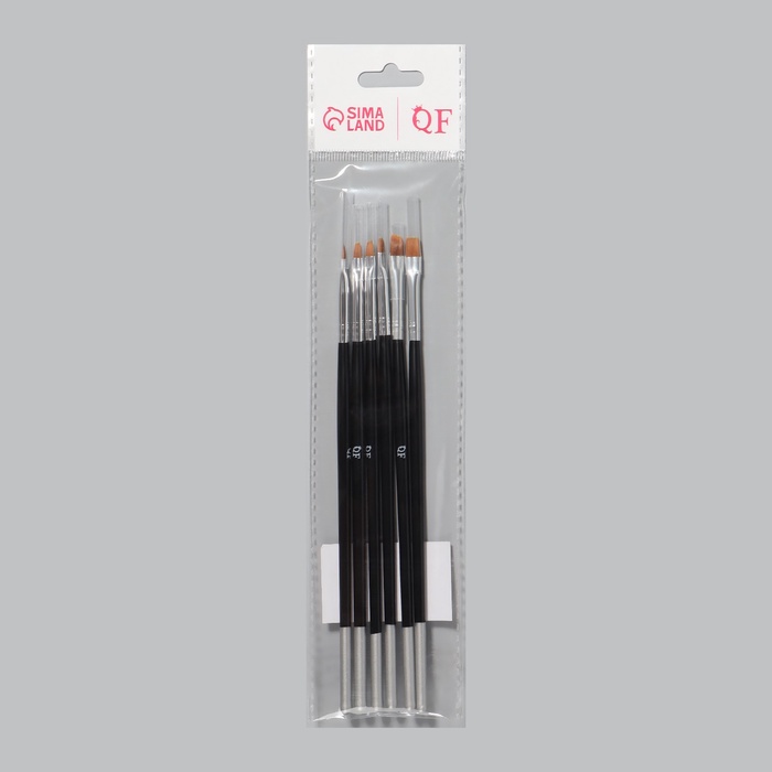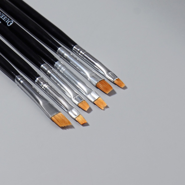 Набор плоских кистей для наращивания и дизайна ногтей, 6 шт., 18 см, чёрный