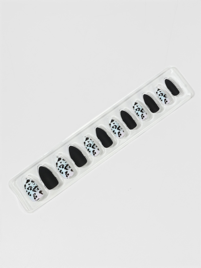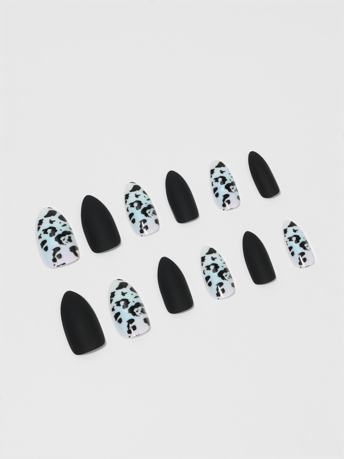 Накладные ногти «Лео», 12 шт., с клеевыми пластинами, форма миндаль, чёрные, бежевые