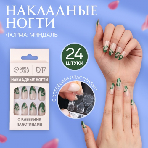 Накладные ногти «Pattern», 24 шт., с клеевыми пластинами, форма миндаль, бежевые, зелёные
