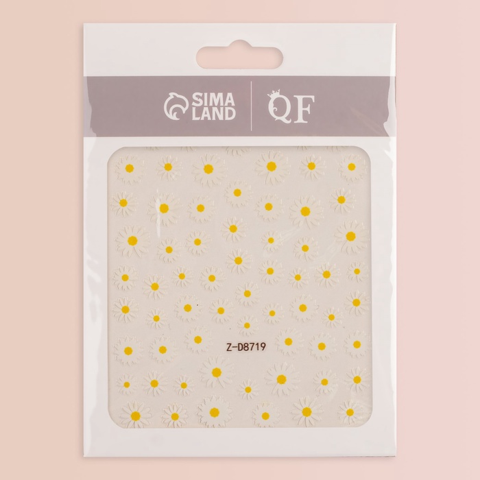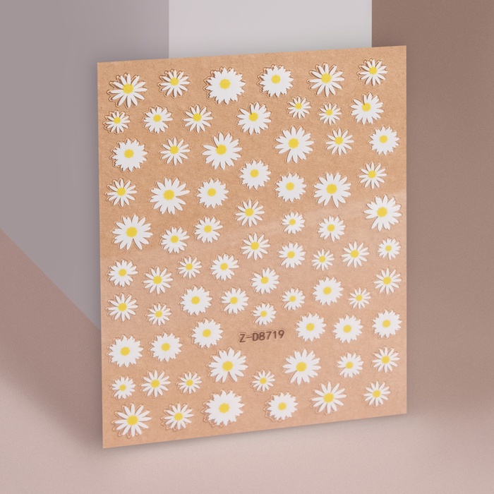Наклейки для ногтей «Ромашки», объёмные, белые, жёлтые