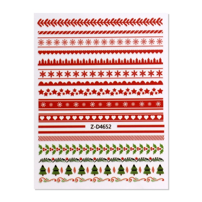 Наклейки для ногтей «Зимние узоры», красные, зелёные